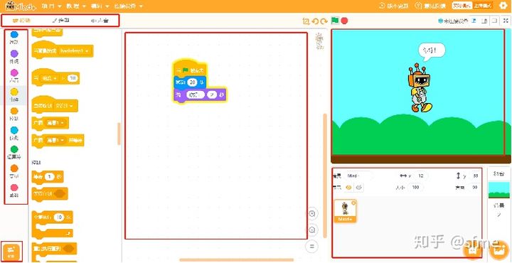 Scratch是麻省理工学院媒体实验室开发的一款图形化开发工具,代码开源,早期主要用于电脑动画编辑,面向小朋友群体,通过鼠标拖拽的形式放置各种角色及脚本指令,脚本指令通过搭积木的形态提供给小朋友使用,界面直观好用。使用门槛很低。后面很多图形化编程都是以此方案来开发的!由于技术设计方向的不同,scratch并不能很好地兼容arduino环境,做一些简单的模拟数字量采集和IO端口输出还可以,一些复杂的arduino功能,scratch支持的就不时很好。不得不提的是由于官方某些作死的行为已经被教育部门禁止使用了!