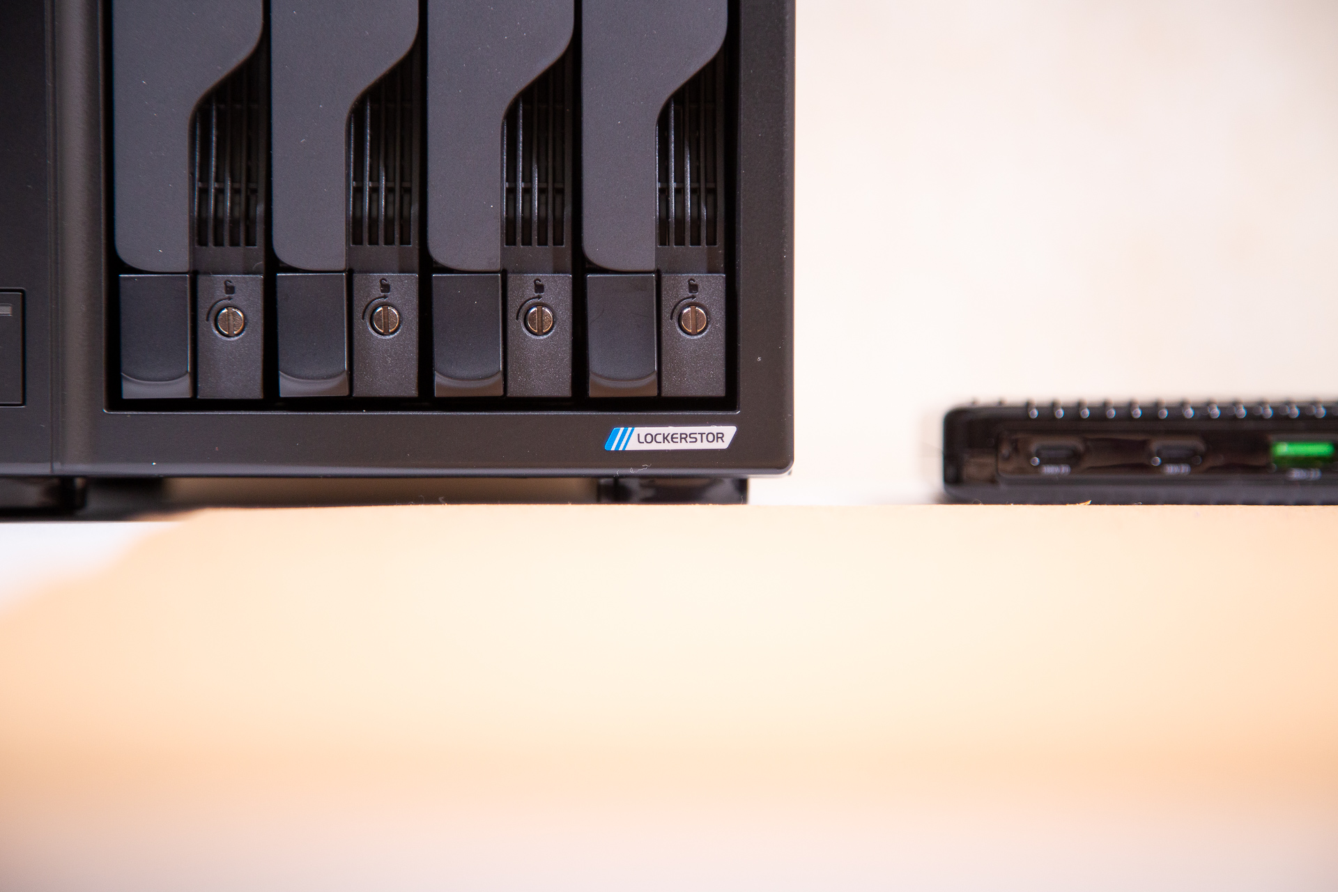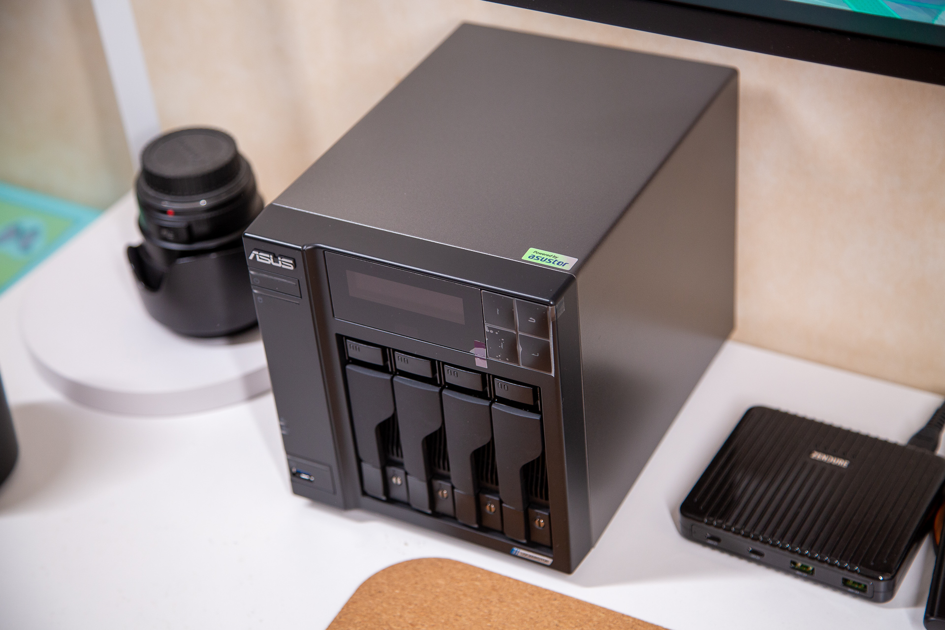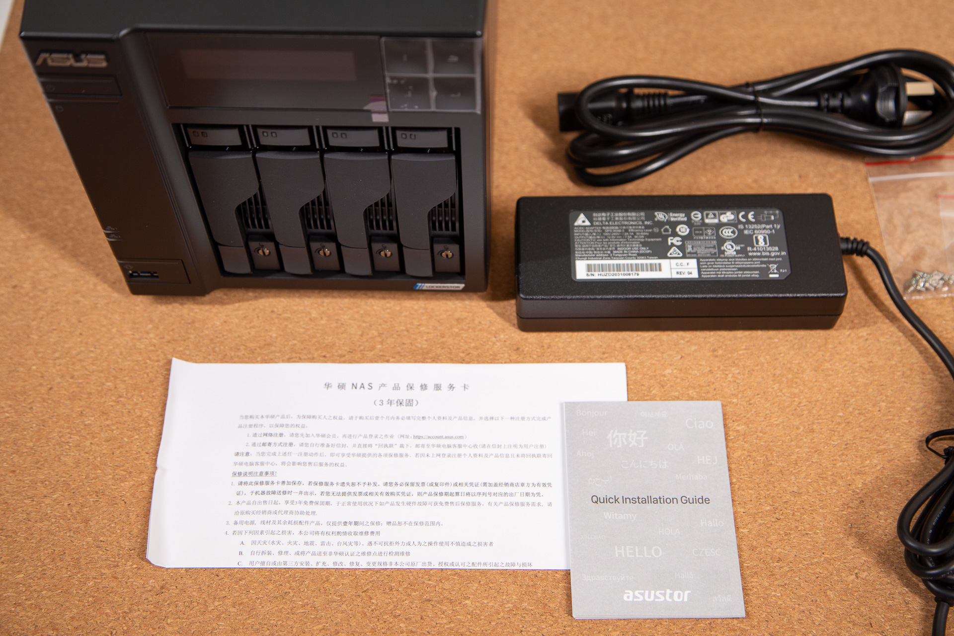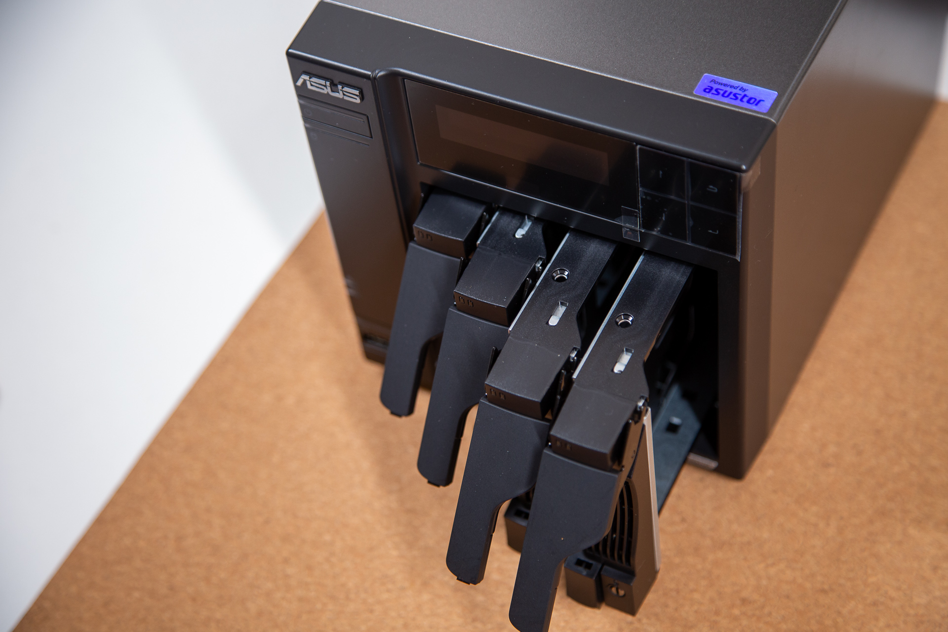 外观方面AS6604T是一款4盘位NAS,四个硬盘托盘支持快拆设计。