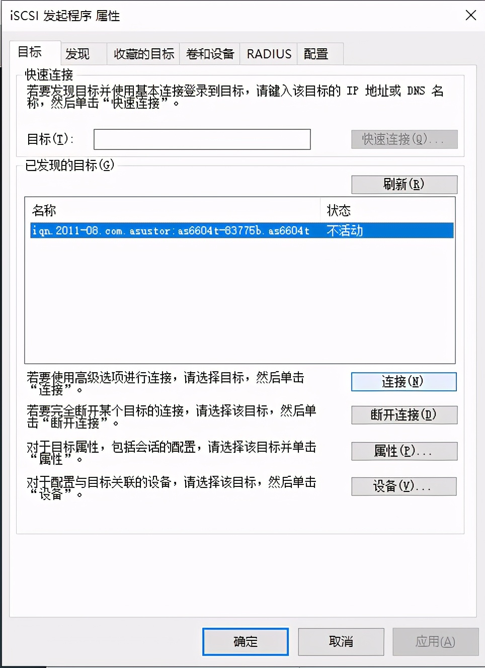 在PC端点击开始找到Windows管理工具找到iSCSI发起程序挂载iSCSI网络硬盘即可,显示状态为已连接之后就可以在磁盘管理中找到要设置的硬盘了。之后的使用体验基本和本地磁盘一致,得益于2.5G接口的体验,实际传输速度可能能和SSD读写类似。