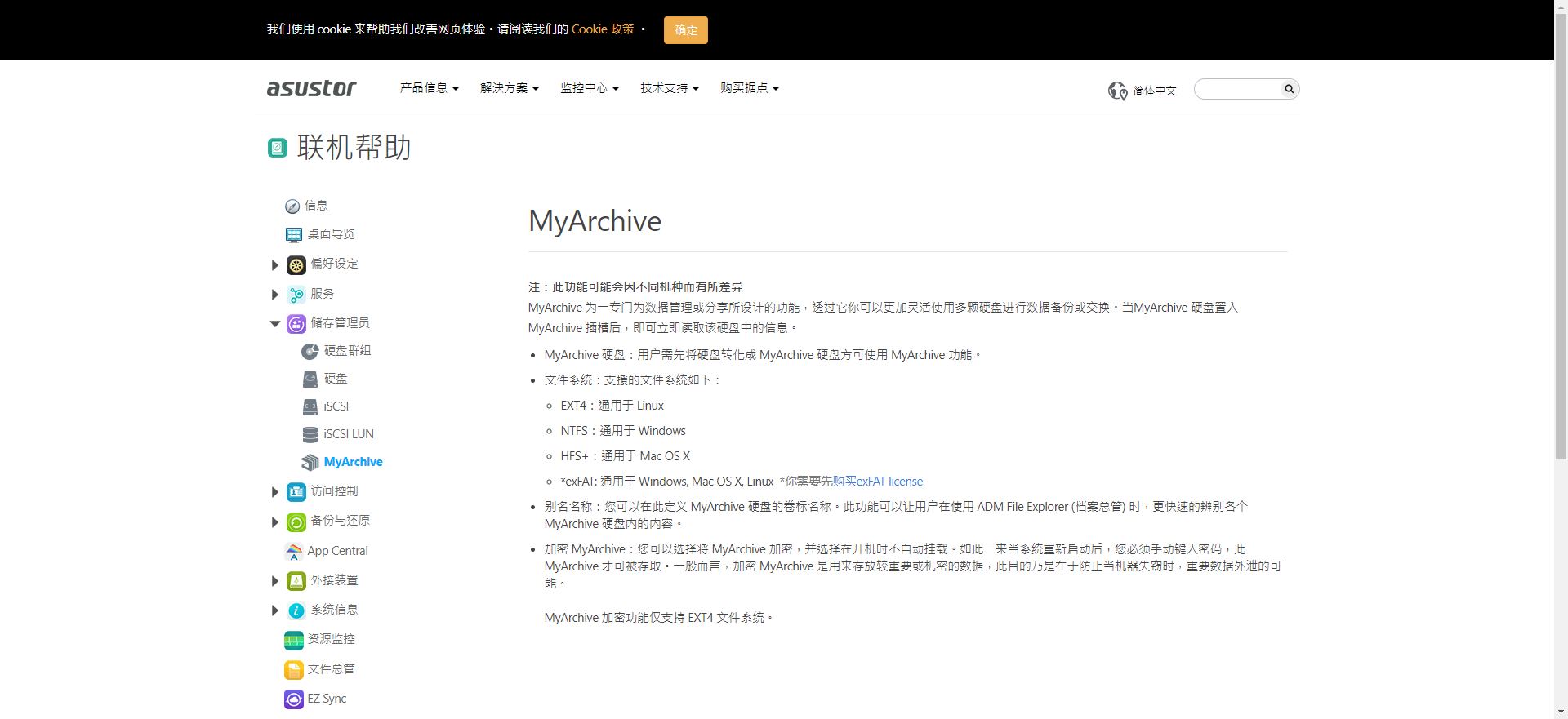 当然如果对于华硕的ADM系统还不了解的话,可以通过华硕的联机帮助来查询。对于每个功能都有详细的介绍。像是iSCSI、MyArchive都有十分详细的解释。对于硬盘模式不懂设置的话,也可以在硬盘设置中找到对应的介绍。