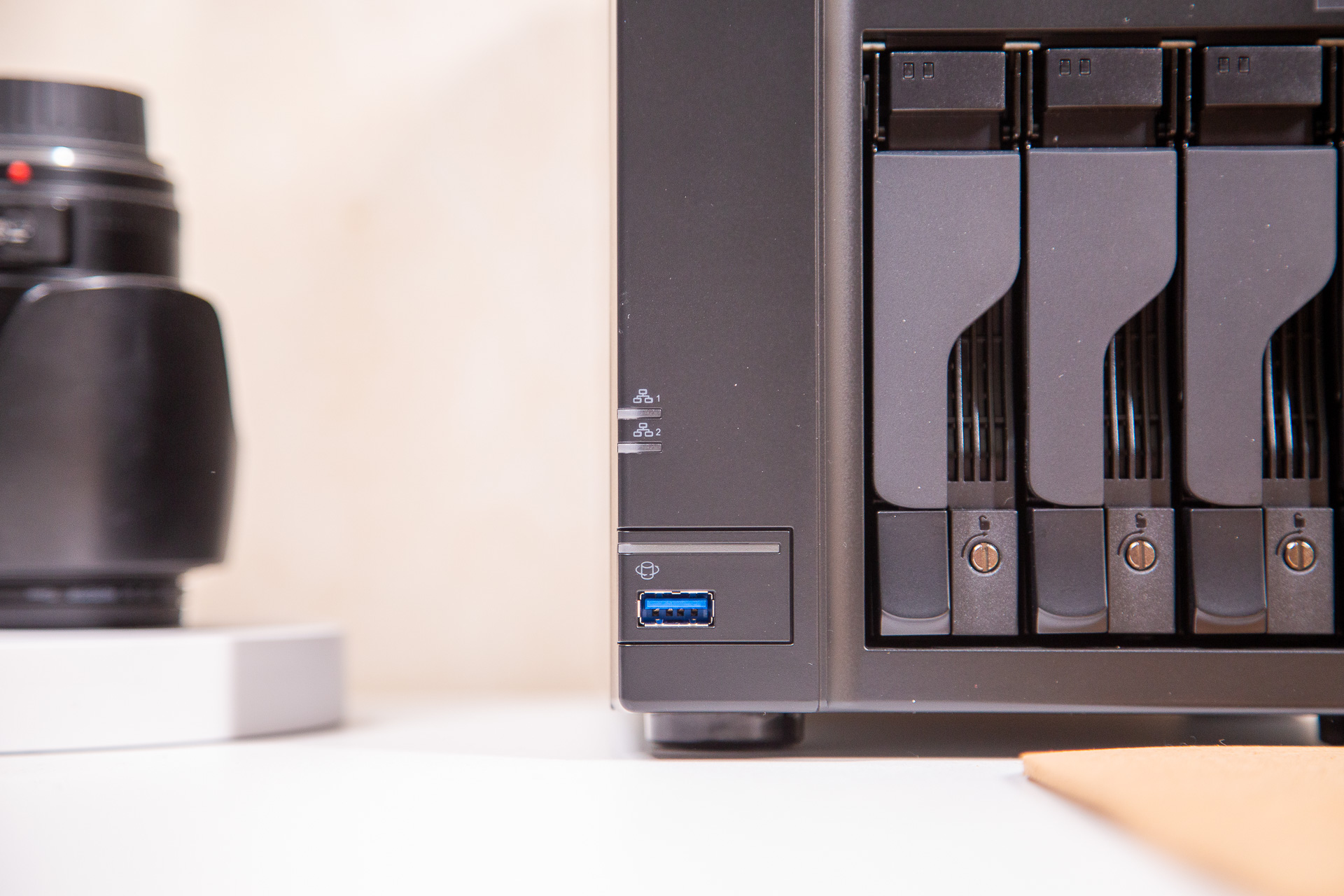 正面左下角还设计了USB3.2 Gen1 Type-A接口备份接口。
