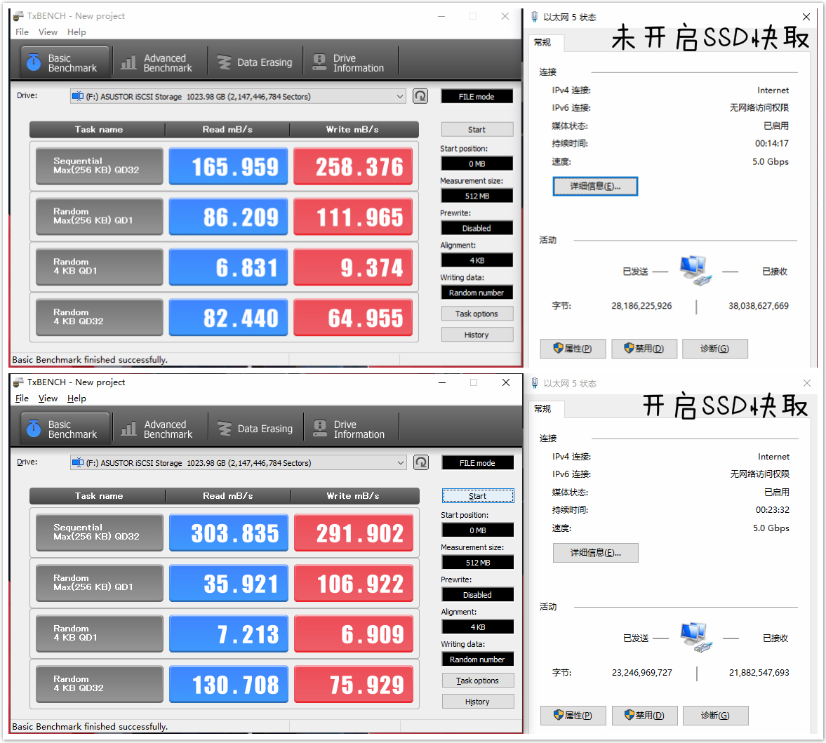 对比开启SSD快取前后速度,可以看到整体提升还是非常明显的,特别是4K方面。