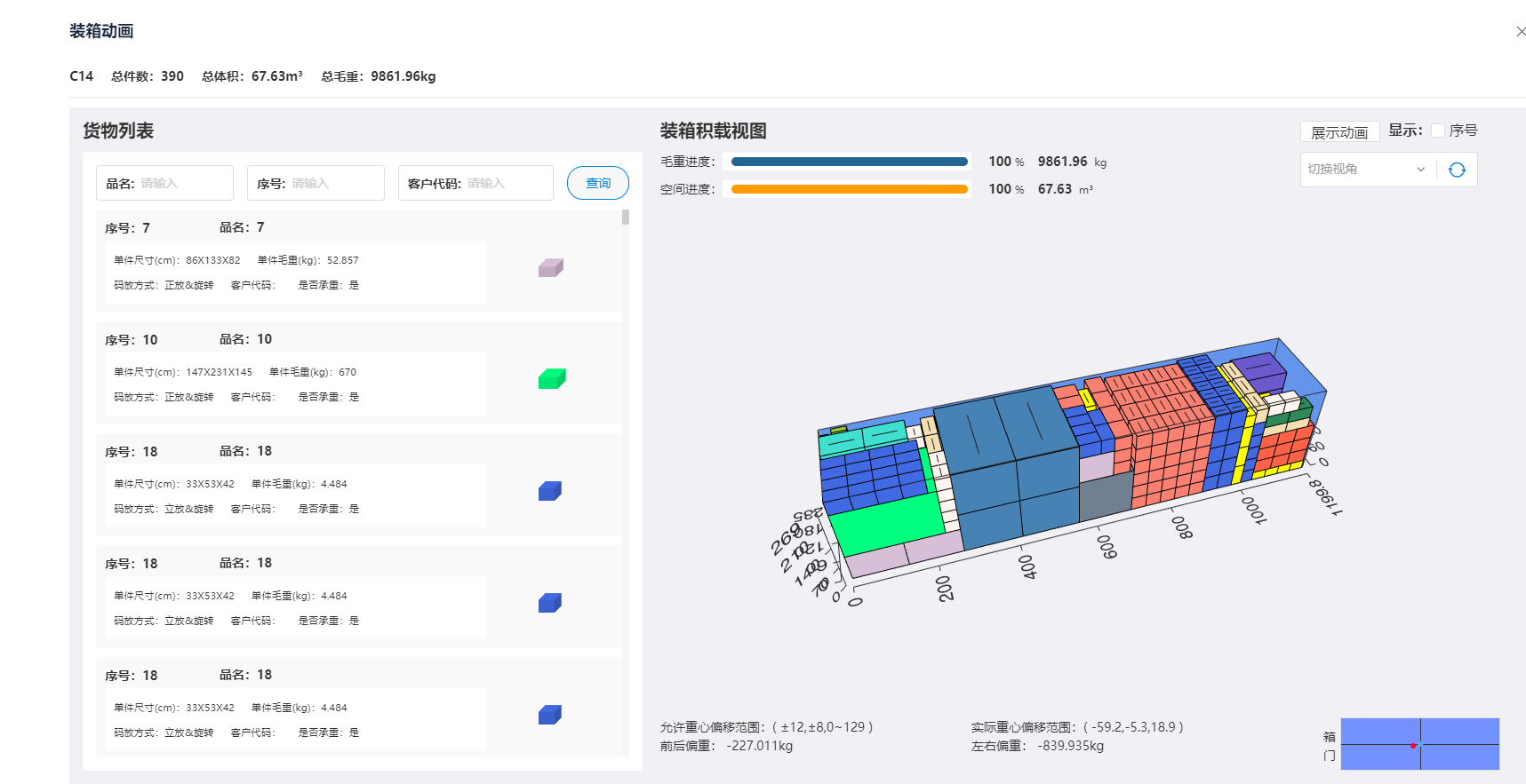 3、精度高:悠闲装箱货物装载优化软件的核心在于优化算法的精度,能够根据不同形状和重量的货物进行智能化的装载规划,并能够尽可能地减少空间浪费。