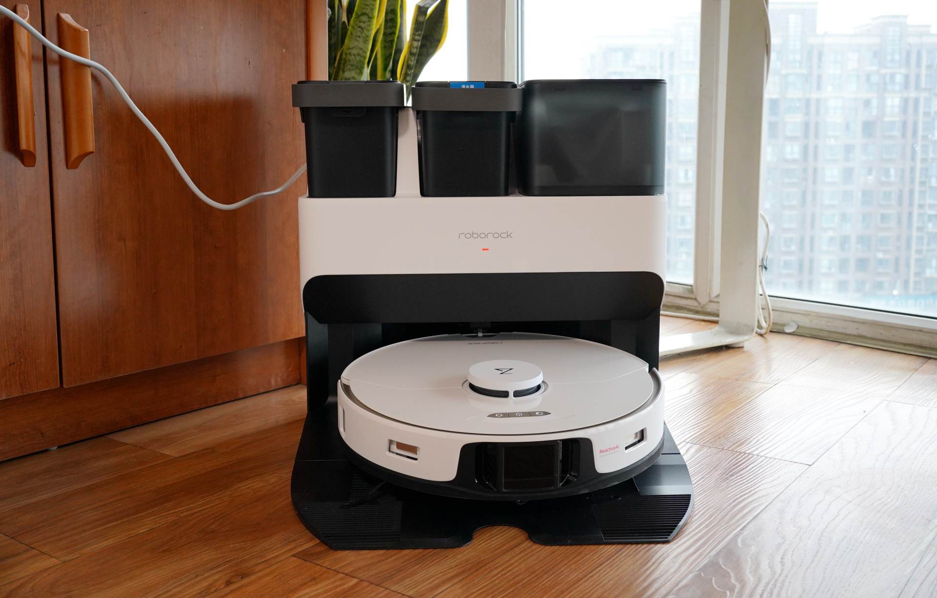 G10S这次最大的突破主要是在基站的设计上。G10S可以实现自动抑菌(清水箱带银离子模块)、自动集尘(2.5L大容量尘袋60天月抛)、自动烘干(需要单独购买模块)、自动上下水(需要单独购买模块),功能上可谓十分丰富。从体型上看,G10S延续了黑白的撞色搭配,整体来看个头也并不算大,下面介绍下这款功能丰富的底座。石头G10S自动集尘采用了集尘袋的设计,使用大约60天后,可以选择直接扔掉集尘袋。这里还有个小细节,集尘袋的卡扣是塑料材质,相比于一般的纸质材质,插拔的体验感更佳。