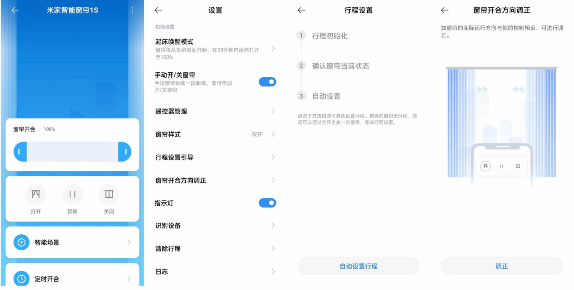 无需动手就可以完成窗帘的操作,相比传统窗帘使用更加方便。细节设计上,的开合功能设定上也比较实用,同时可以自主调整开合的百分比(即开合值)。起床唤醒功能比较好玩,设定后窗帘会在35分钟内缓慢打开到100%。