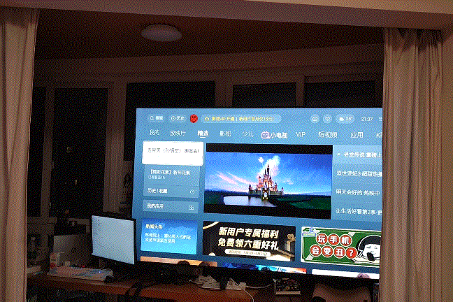 采用了带分区控光的直下式背光,65寸的背光分区分别达到了90区,整体控光表现和画质表现不错。峰值亮度达到了800nit,能够不错的表现HDR效果。 94% DCI-P3色域、支持MEMC,主流画质电视的标配一个都不少。支持120Hz刷新率,HDMI 2.1接口,对主机游戏玩家也十分友好。硬件堆料上,A73四核芯片+3G运存,基本也是目前比较高的硬件配置咯,流畅运行无卡顿。