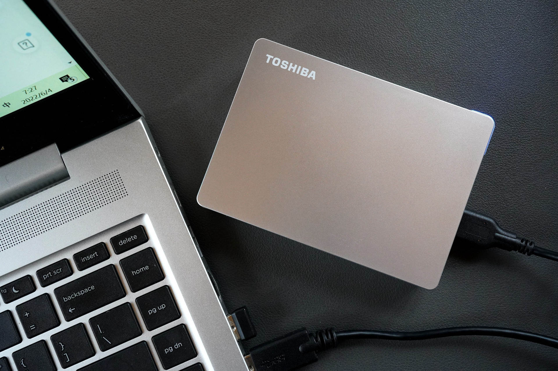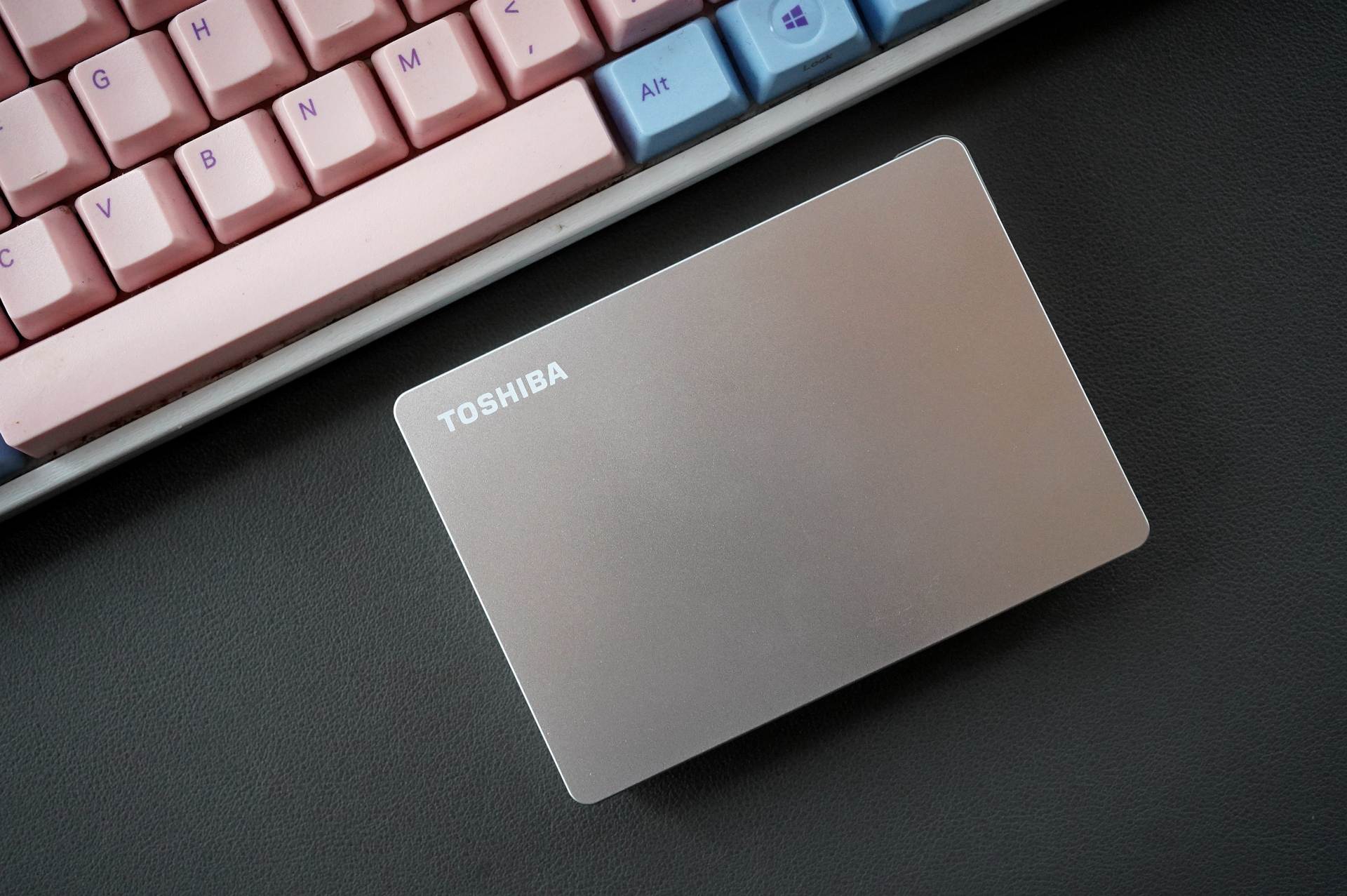 Canvio Flex采用的是2.5寸机械硬盘结构,正面采用了一体化银色塑料工艺外壳,磨砂工艺处理下质感和触感表现都比较出色。单手可以轻松握持,随身携带还是很方便的。