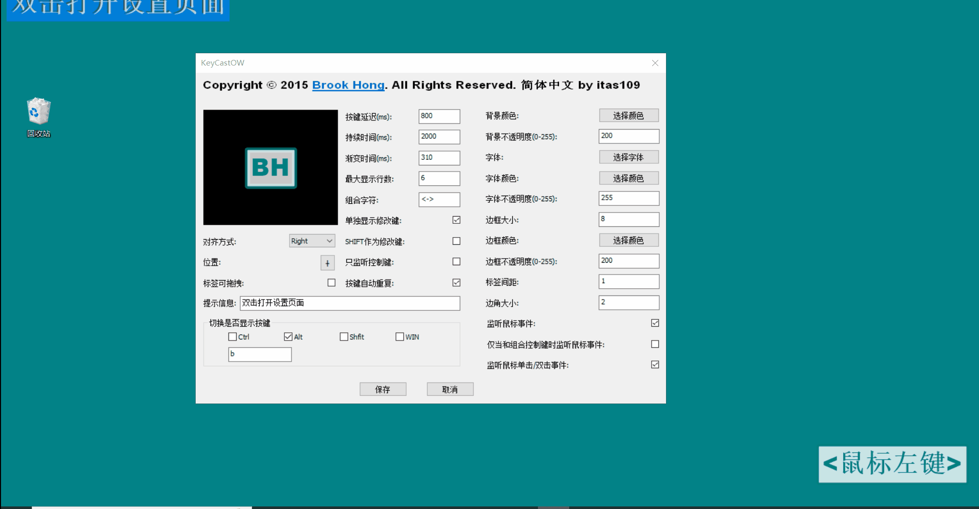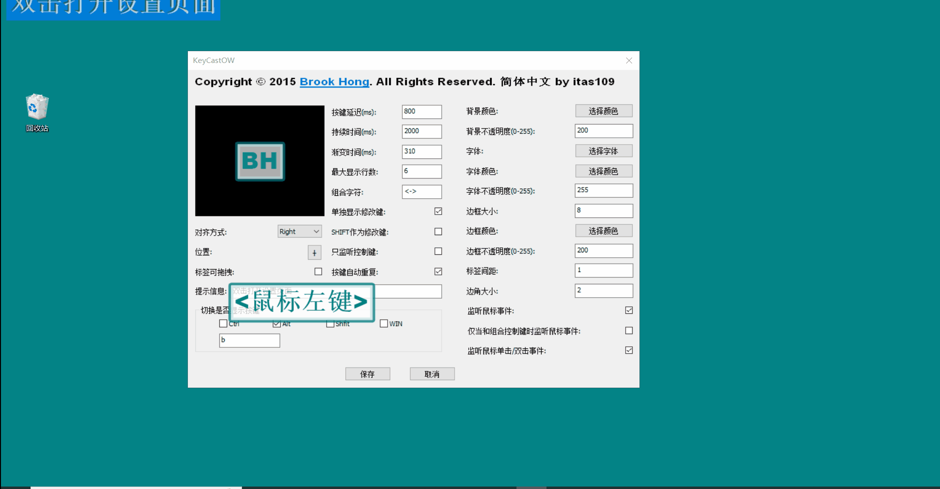 提示信息双击 双击可快速进入设置页面。这一点有点带个人习惯,我习惯性的不希望看到屏幕有多余的信息,所以倾向删除,用小窗格进行设置页面调取。