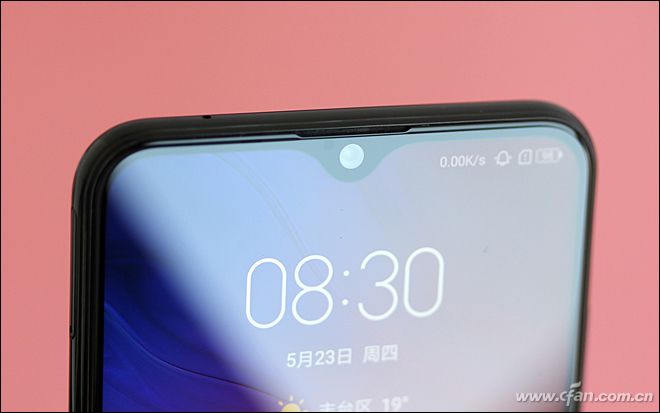 最后咱们再来看看联想Z6青春版的设计。这款产品采用了6.3英寸微孔水滴屏设计,对边框控制得不错,官方给出的屏占比参数为93.07%。