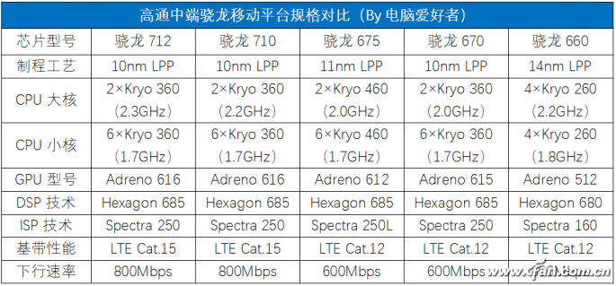 骁龙710采用了与骁龙845相同的10nm LPP工艺,核心架构则是由Cortex A75/A55“魔改”而来的Kryo 360,支持4K HDR播放和观看HDR视频和应用的功能,并改进了ISP、Hexagon DSP和调制解调器,在拍照、AI和下行速率方面都有所提升。