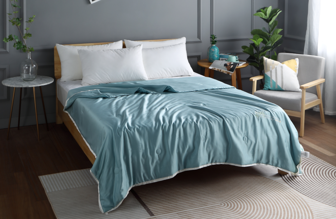 而床品行业中,被子、被芯面料等也常运用到聚酯纤维。填充为被芯,它轻便柔软、蓬松保暖、价格经济实惠,适用于大部分家庭,尤其是湿冷的南方;当它作为被面材质,结实耐用,不用担心被子轻易就出现磨损、跑绒等问题。