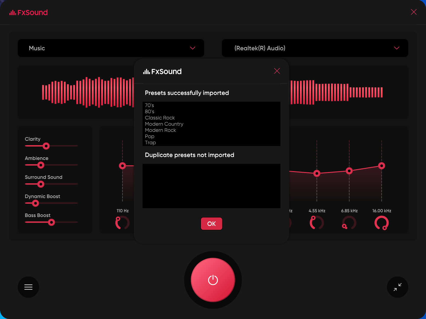 在下次或是其他人想要用的时候,再把配置导回 FxSound 就OK了。