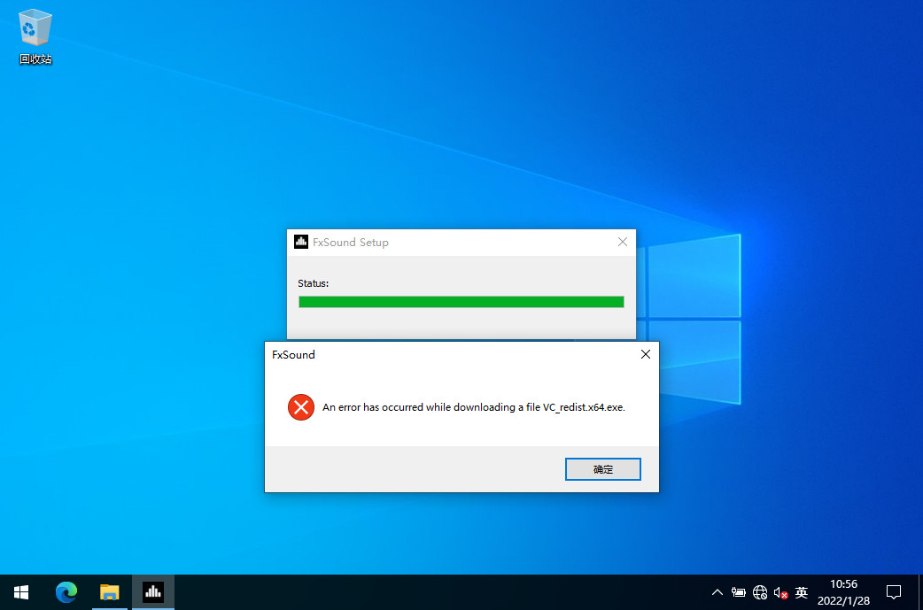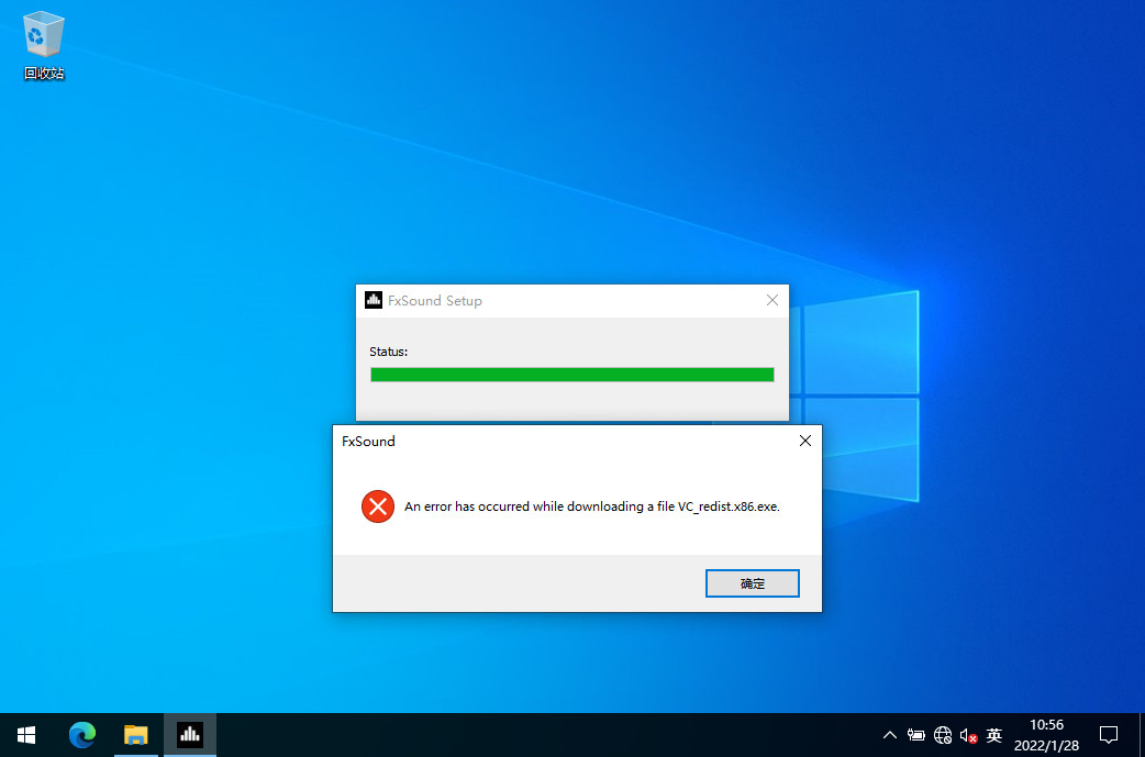 那 FxSound 在安装时,如果无法下载 VC_redist.x64.exe 和 VC_redist.x86.exe ,她就会给出以下错误提示。