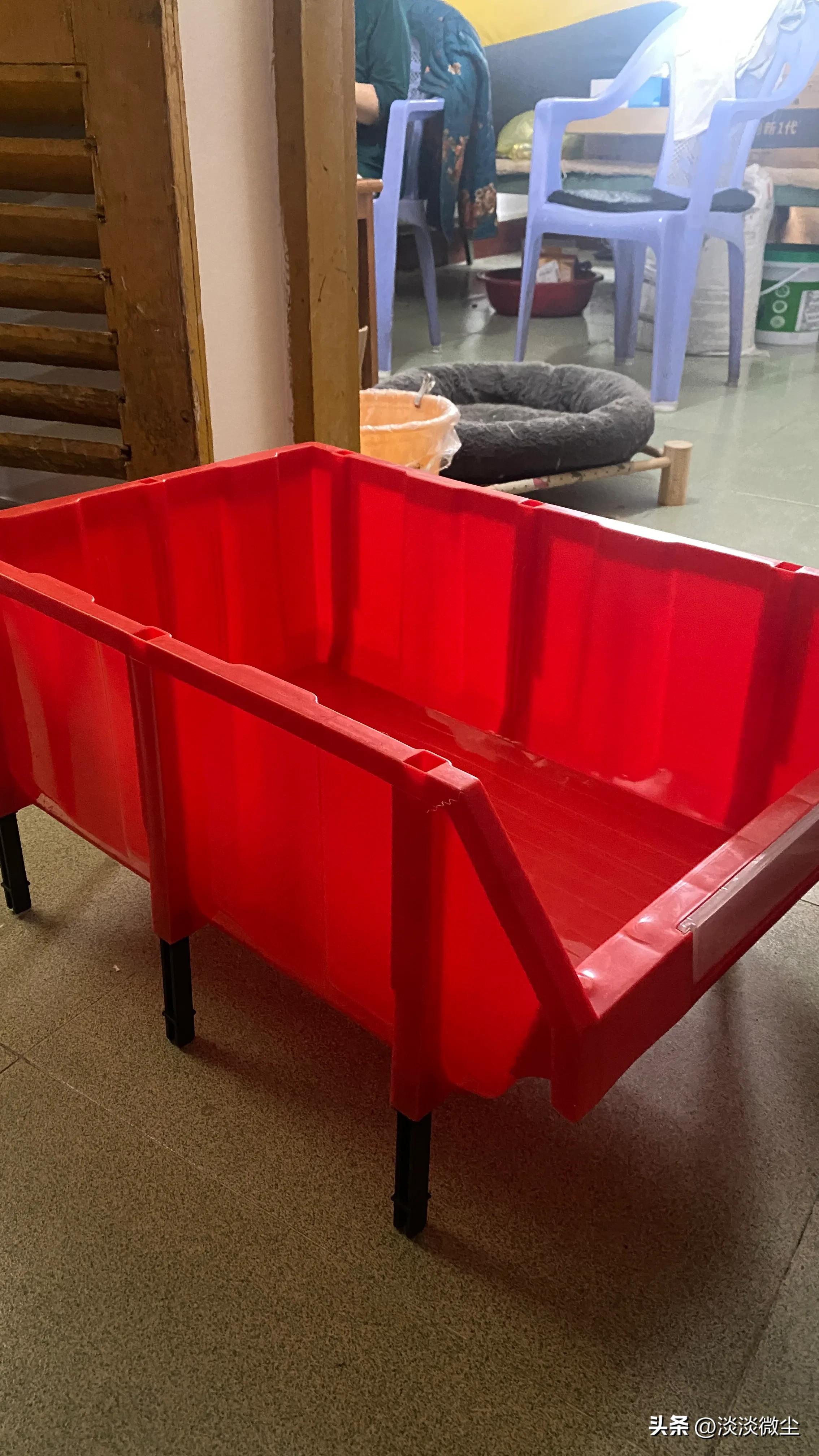 搬家后只有一个大盆子,猫娃子们就还是会偶尔拉在小盆子外面,我就又去网上淘好东西,结果20块钱淘了个零件箱,太划算了,也是很大一个,完全够用了!