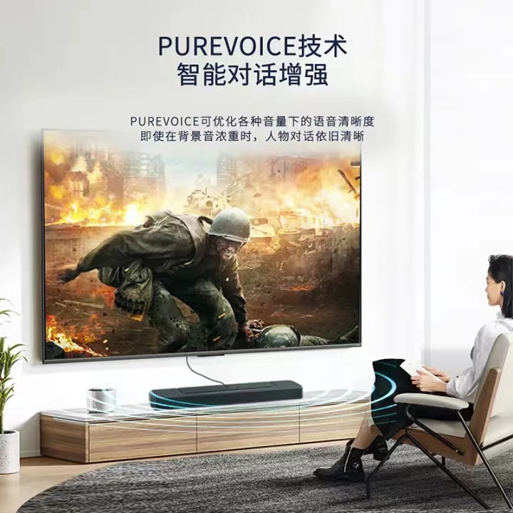 观影时经常会出现一些嘈杂环境,这时人声就会不清不楚的,如果没有字幕那真的是要疯了。JBL BAR 2.0为解决这个问题采用了PUREVOICE技术,可以优化各种音量下的语音清晰度。即使在背景音浓重时,人物对话依旧清晰。