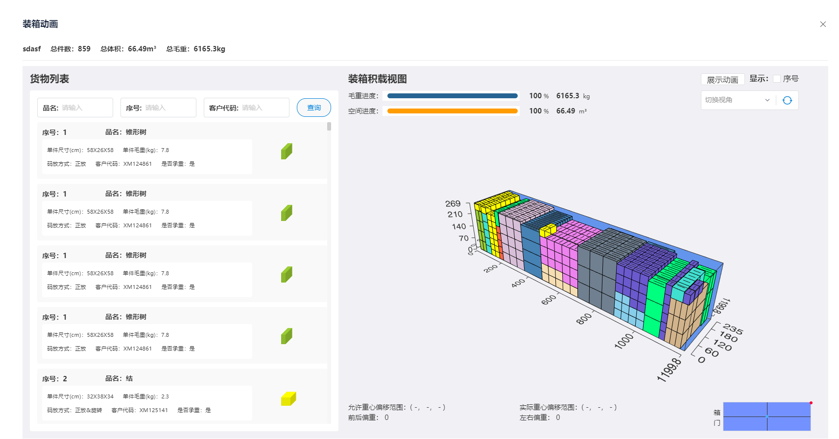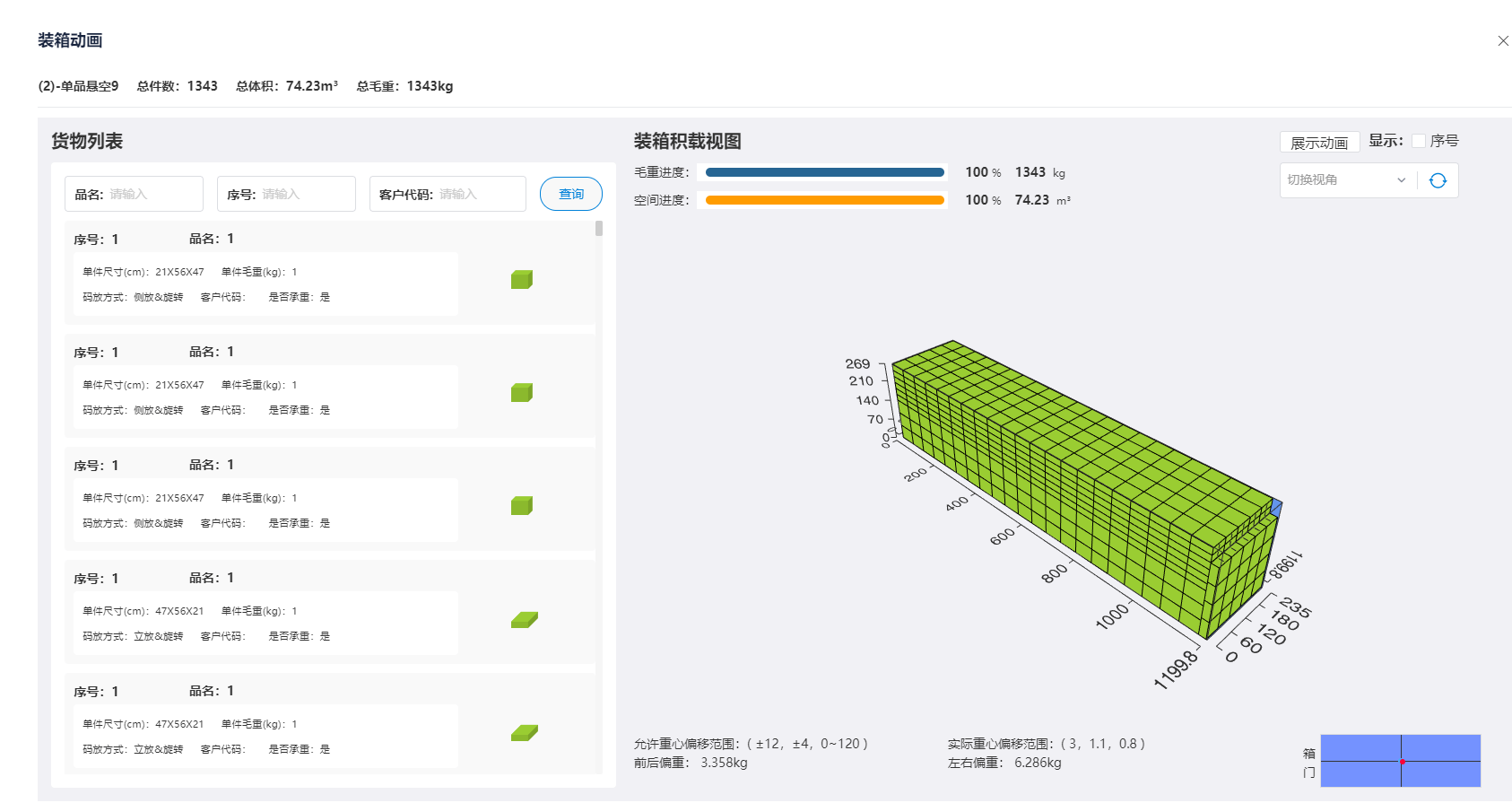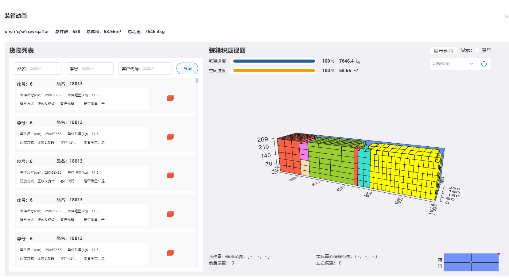 5、提供装箱重心计算:装箱重心计算功能,确保货物在装箱后的平衡和稳定。