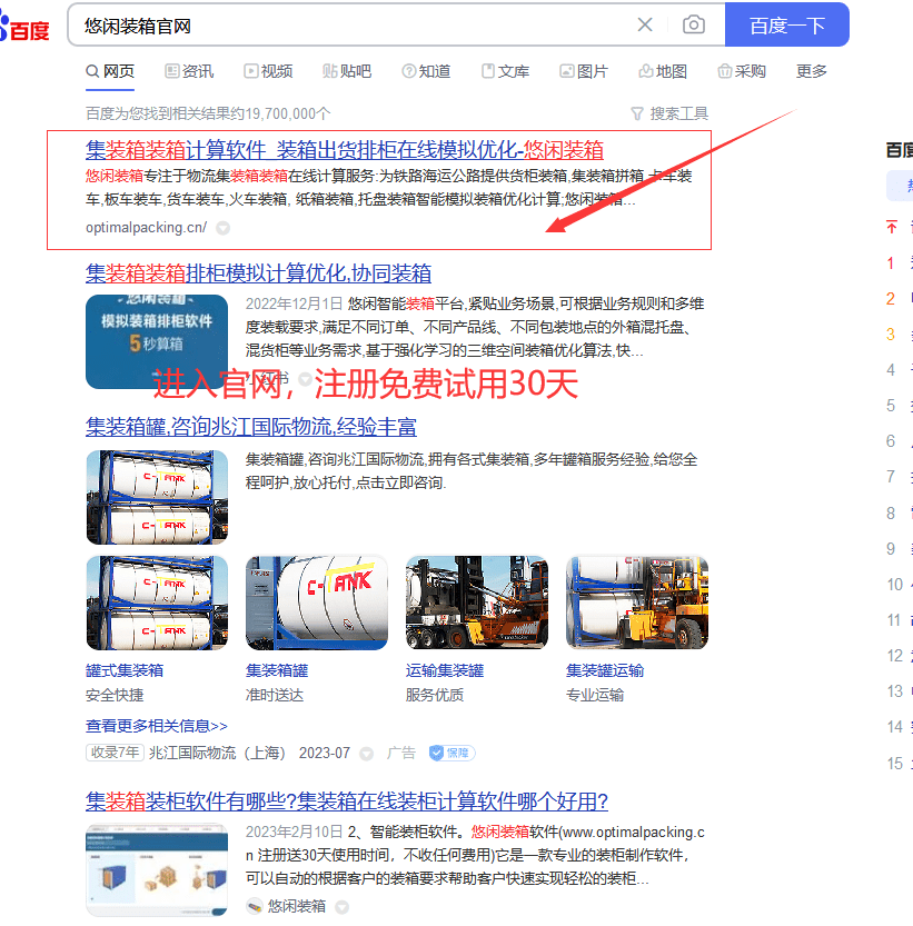 1、注册免费试用30天:免费注册悠闲装箱,30天的免费试用体验功能。