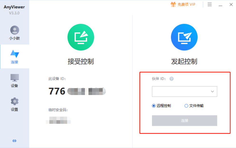 使用逻辑跟其他远控大差不差,注册登录后输入被控电脑的ID和安全码即可连接。但是临时安全码也就是密码不能进行隐藏,存在一定的使用安全风险。