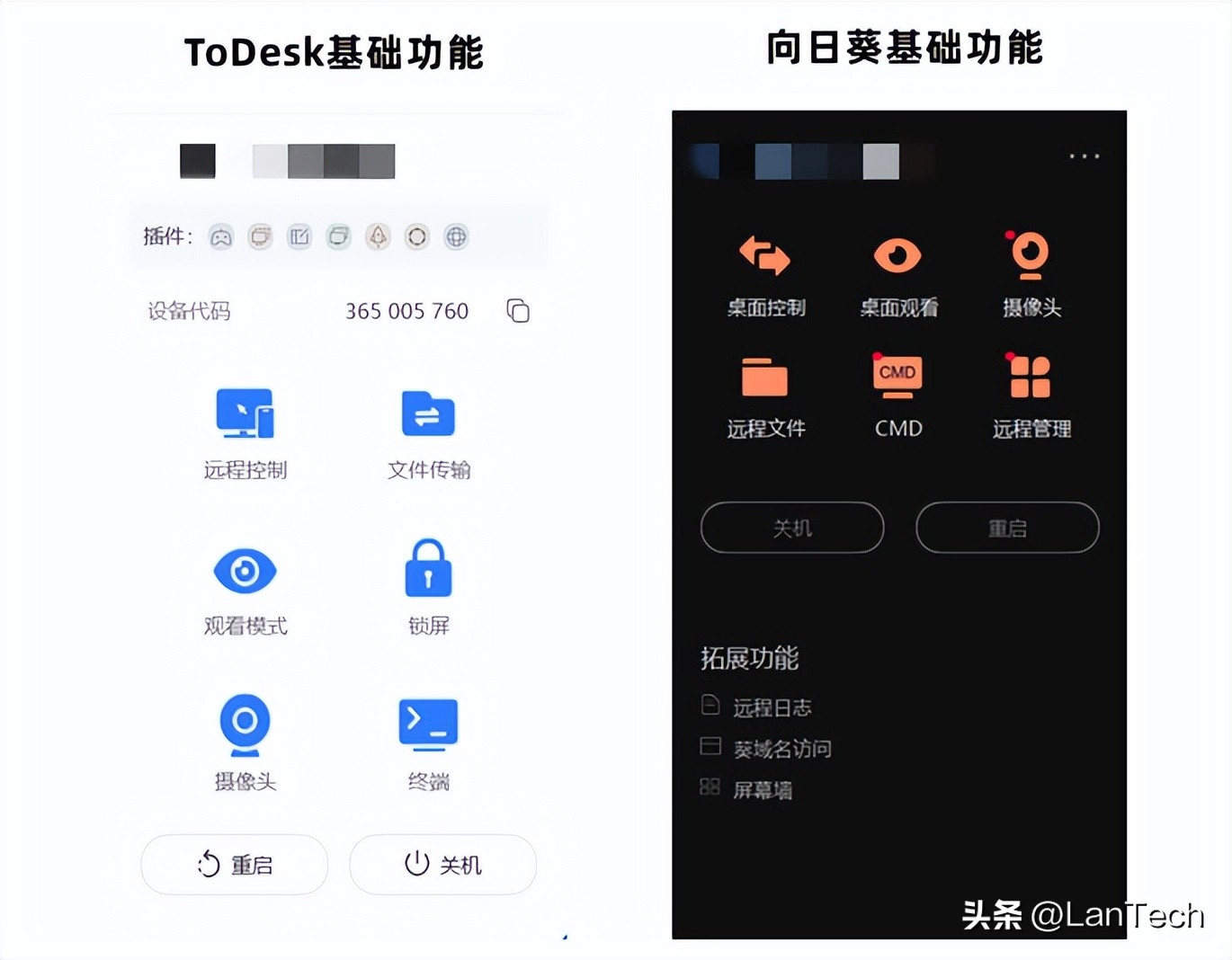 在功能方面,五款软件差异比较大。其中ToDesk和向日葵有完备的远程基础功能的,常见的桌面控制、观看模式、共享剪贴板、隐私屏功能、远程摄像头、远程打印、文件传输等等都能支持。