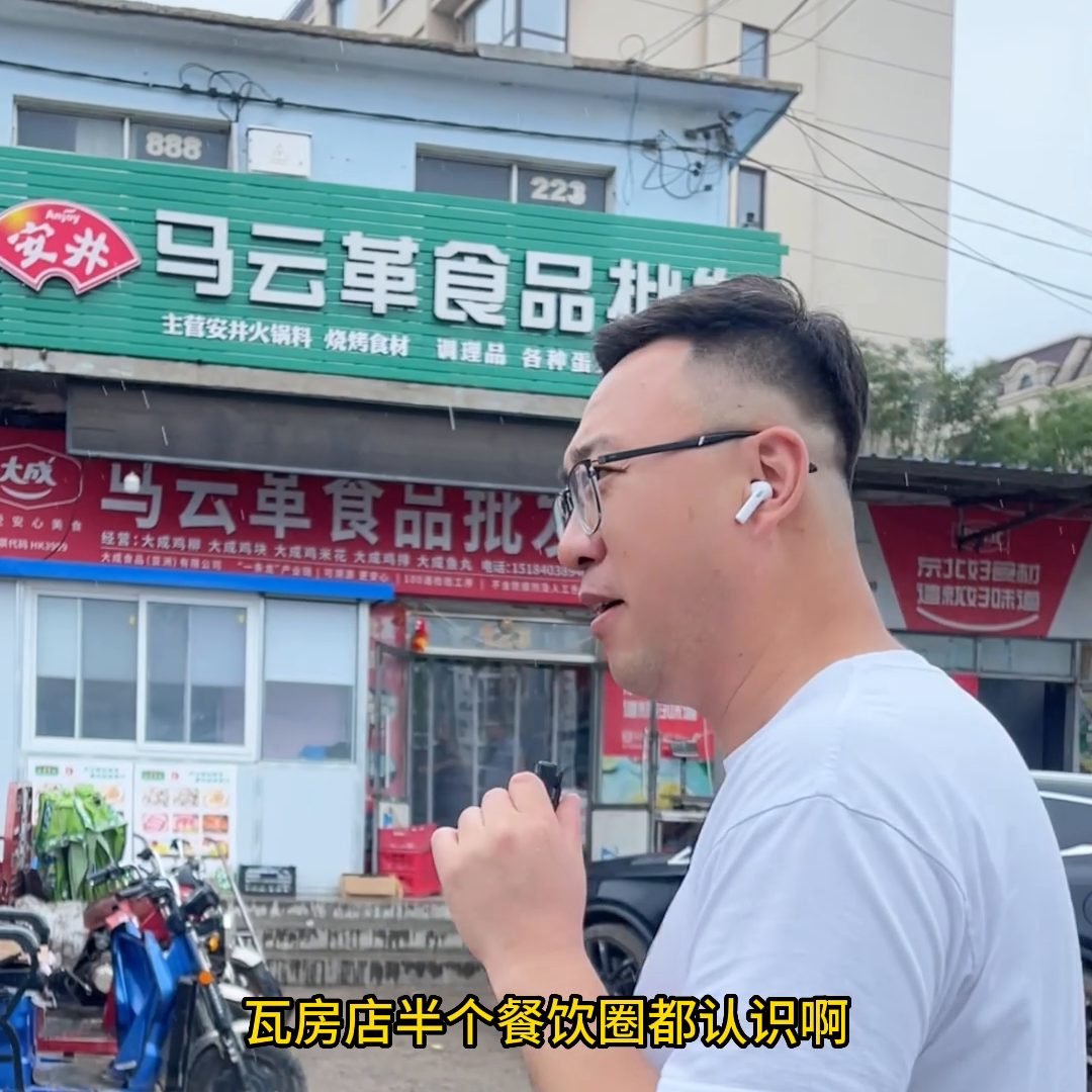 今天,二哥冒着雨带你们去参观瓦房店的食品批发市场。它位于美术高中对面,位置很好找。你们看,我身后的这家店叫马云革食品批发。“革”这个字在全国都很有名,加上“革”字更容易被大家记住。瓦房店的餐饮业者都知道这家店,这里是他们的货源之一。这个地方很大,你们可以看到这里有很多冰柜,里面存放着各种肠类和熟食。这里的烤肠和涮锅牛羊肉价格实惠,而且品质不错。由于不方便透露价格,我就不多说了。如果你感兴趣,可以亲自来看看。