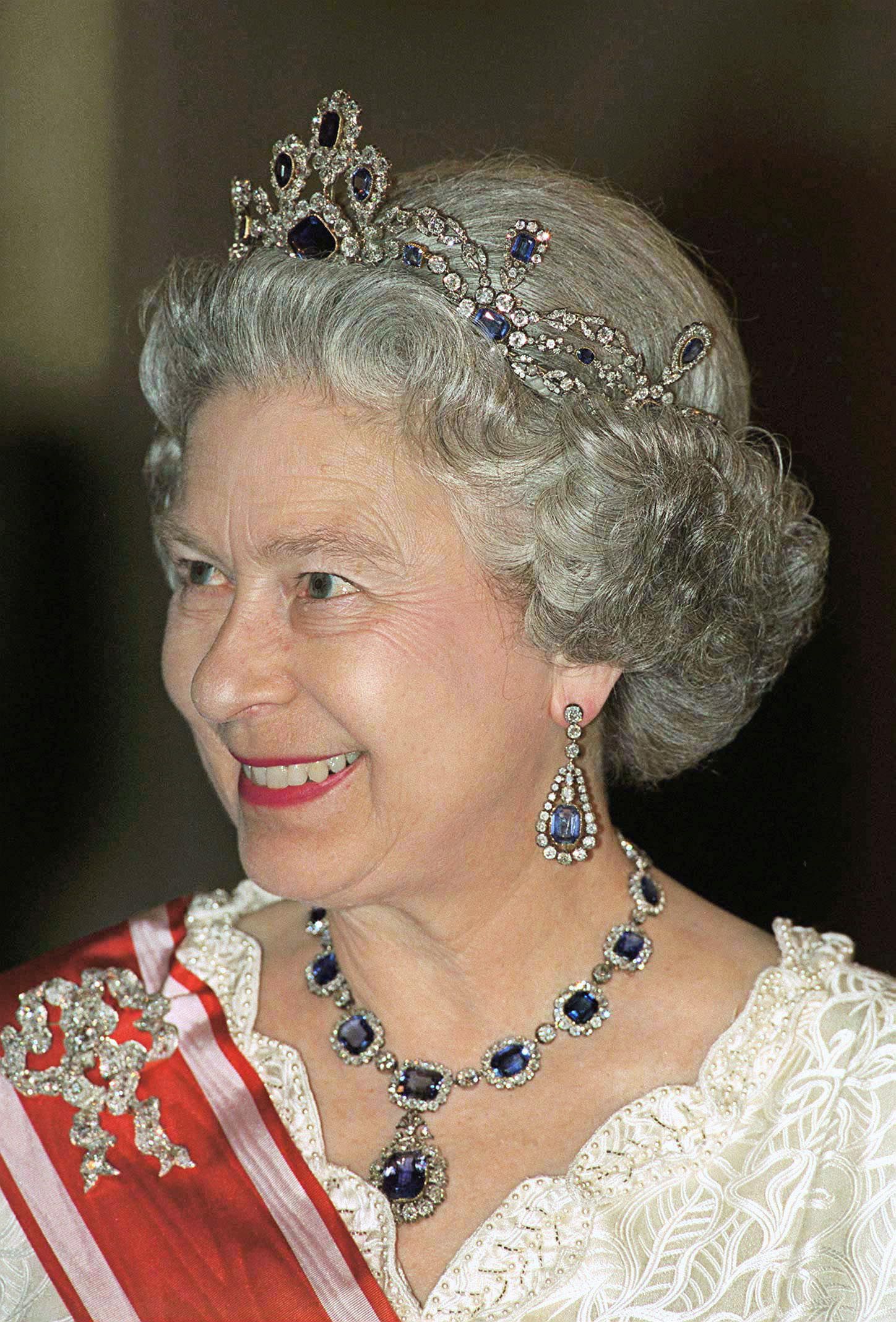 女王对这套蓝宝石也是真的喜欢,有多喜欢呢?说出来大家可能不信,她为了能在重要场合展示这套珠宝,还买了一顶能与之相配的蓝宝石王冠。