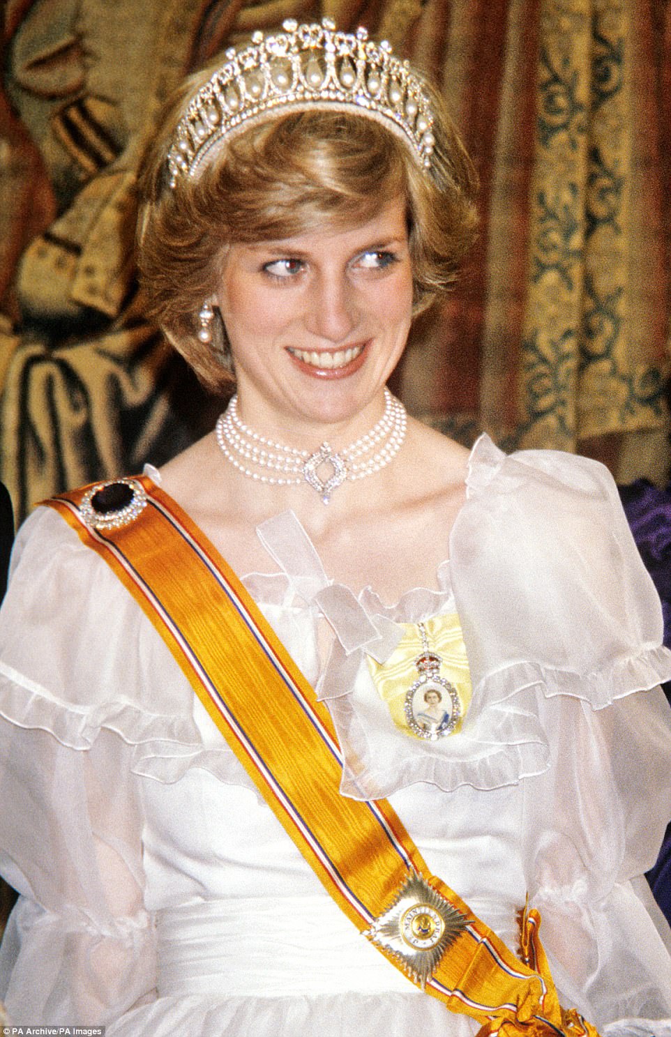 不得不说,温莎家的人审美都是在线的,父亲赠送的项链耳环,配上她自己购买并委托改装的王冠,一套搭配下来一点也不违和。