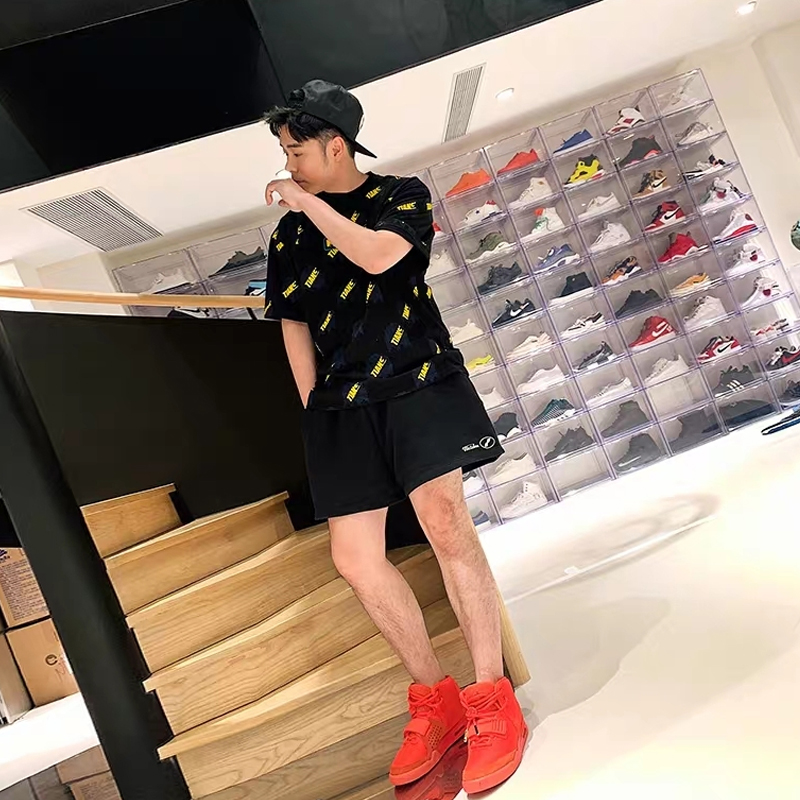 对于这张照片小编真心想问,这是谁给赫赫拍的"大长腿"?必须加个鸡腿了!本来"五五分"的身材给拍成了"四六分",多加的这一分就让陈赫显得高挑纤瘦了不少,也可能是黑色显瘦的缘故吧,经典黑配黄色TIANC图案,起到提亮的效果,搭配黑色短裤简约大气,脚上这双亮红色的运动鞋也太"炸眼"了吧,敢穿大胆,不愧是个"潮流赫"。