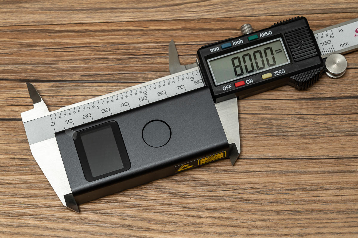 主机整体的尺寸为80 x 35 x 21mm,重量仅为60g,非常小巧,随身携带是一点负担也没有,由于机身长度在末端模式下会计算在测量结果之内,所以尺寸极为精准。