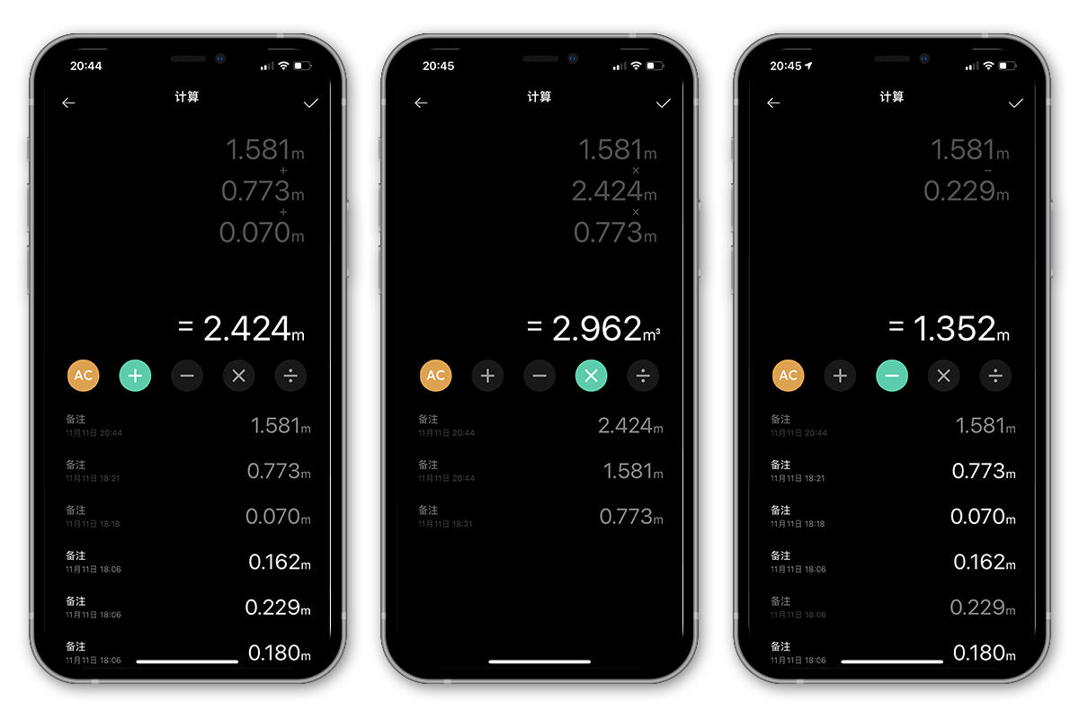 计算器可以进行面积/体积/长度运算。