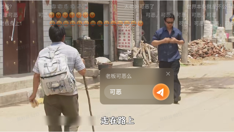 视频中的小伙被黑心工地老板拖欠了工资,在视频解说中作者通过弹幕贴纸+话语引导的方式号召各位通过弹幕表达自己对这件事的看法,不仅让观众为小伙发声,还增加了视频的弹幕量。