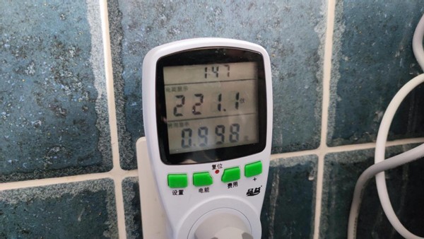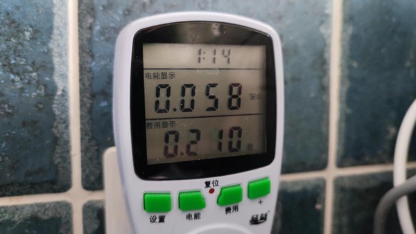 耗电量测试,正常洗涤模式,六件内衣裤,45分钟洗涤时间,耗电0.21度。