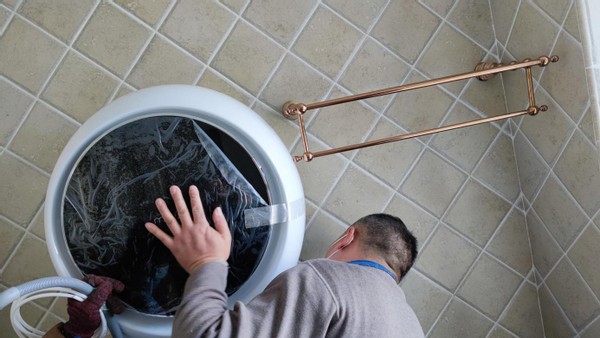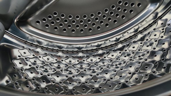 打开黑色面板,可以看到采用了加厚的设计,主要是用于隔热,防止高温煮洗时烫伤皮肤,下面有做测试,非常人性化。内桶的做工很精致,提升筋是S型的,很有大厂品质。无论是整体的设计,还是各种细节,小吉壁挂洗衣机都可以说是精品,即使和那些国际品牌相比,也完全不相上下。