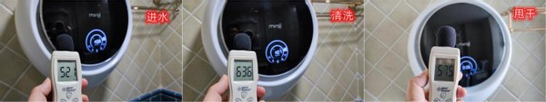 噪音测试,因为洗衣机是安装在主卧内的卫生间,而这个卫生间的背面是一个次卧,对于噪音问题还是挺担心,但实际测试后,进水时的噪音是52.1dBA,而在清洗过程中,最大的音量是63.6dBA,甩干时的噪音是57.5dBA。不知道是不是安装在墙上原因,感觉这个噪音真的非常的小。洗衣服的时候躺在次卧小憩,基本感受不到洗衣机在运行。