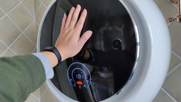 另外,烘干过程中,外壳是否会有高温烫伤的风险呢?实际测试,烘干过程中用手触摸洗衣机门和两侧,只有一些温热感,不会有烫伤风险,这个也不用担心工作中孩子触碰受伤风险了。