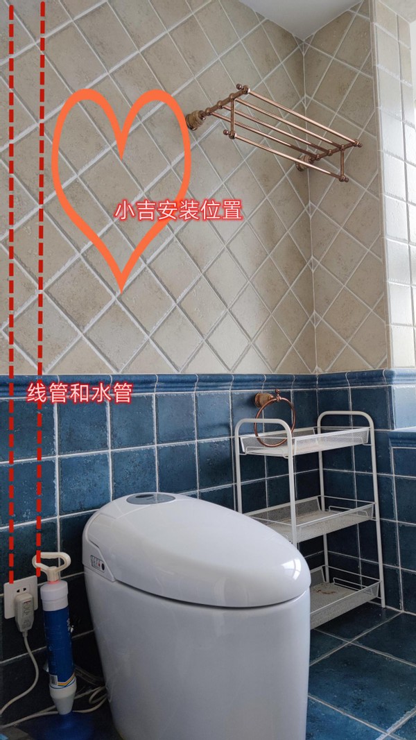 水电方面,是和底下智能马桶共用一个,排水则是买了一个洗衣机地漏盖子解决。当然,后装的美观度上肯定没有预埋了管子的显得完美,而且我家卫生间瓷砖有一个腰线凸起,安装的其中一段无法用自带的装饰盖盖住。虽然没有强迫症,但后续看看能不能装个置物架什么遮挡下。