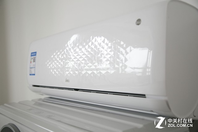 虽然室内机是纯白色设计,但苏宁并没有因此就减少了细节设计。前面板使用了菱形凹凸纹理,能够反射不同角度的光,让产品看起来更有格调。