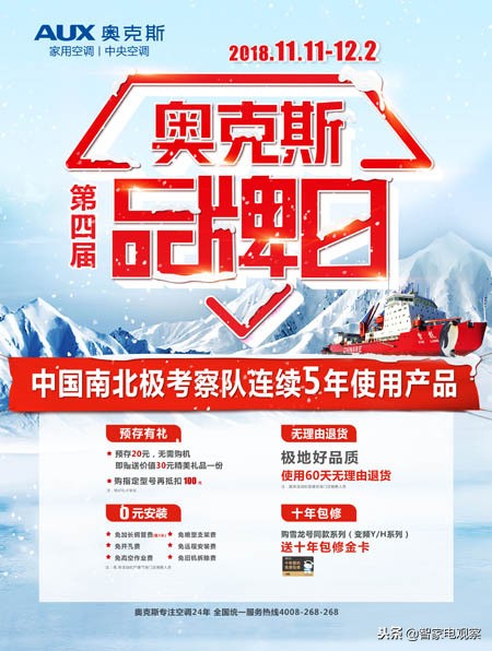 为庆祝奥克斯空调与中国南北极考察队三度签约,第四届奥克斯品牌日温暖来袭,并从价格、品质、服务多维度为消费者提供完美购物体验。