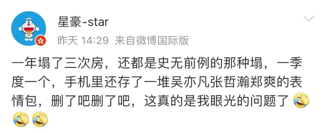 想开点,只要塘里鱼儿多,不怕天天塌房屋。姐妹呀,只要你是海王式追星,就什么也不怕。塌房算什么,塌了一屋还有一屋。只要我够海,塌房就追不上我。
