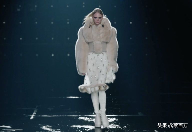 在被隔离、紧闭等议题笼罩的大环境中,马修的新设计充满未来感,具建筑感的袖子及肩线、是赋予本季结构力量的泉源,宛如从外星而来的神奇人种。轮廓宽大的蛹状羽绒外套、人造皮草大衣,与刻意抓破的贴身针织裙和亮片礼服,营造出实用及奢华间的微妙拉扯。 Bandana皇冠帽及仿佛长了蝙蝠耳朵的套头帽,皆成了如同盔甲般护身的必备行头。