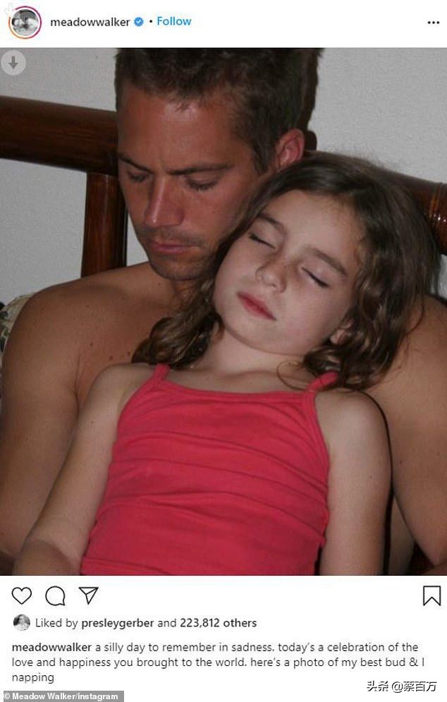 十一月,梅多向保罗致敬,今年是保罗逝世的第七年,她放上了一张照片,她坐在爸爸的大腿上熟睡的快照。如果保罗还在,他会是47岁,看见女儿走在时装周天桥,必然也会心感安慰吧。