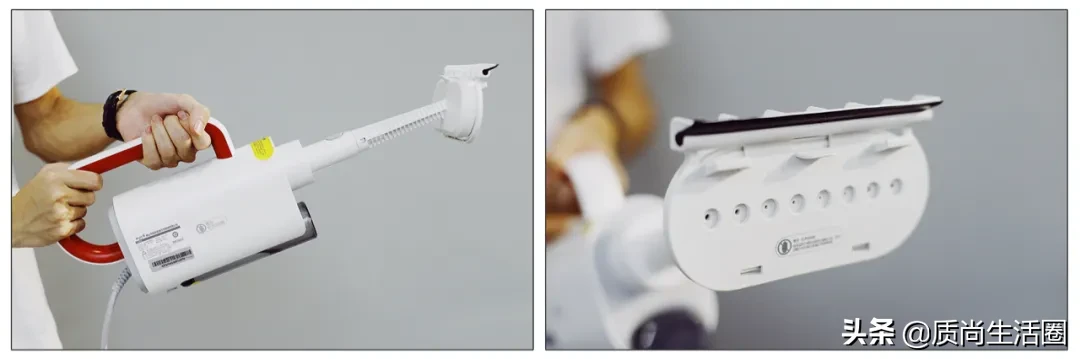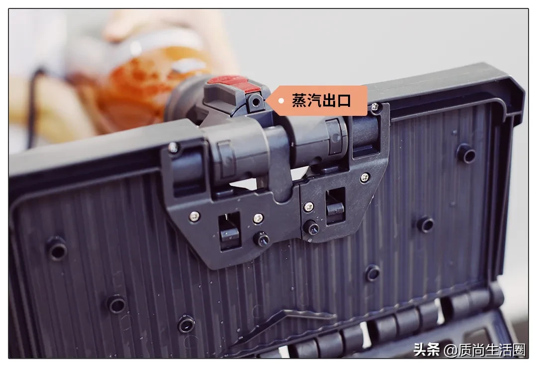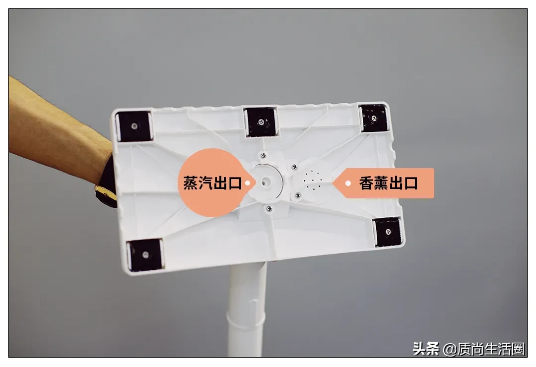 虽然蒸汽出口位置不同,但出汽量(装了拖把头后)看起来差不多。