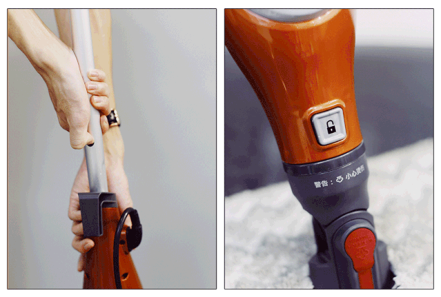 此外,deerma/德尔玛的套管之间有连接的按钮,Shark/鲨客则有拖布释放按钮和拖把头释放按钮。