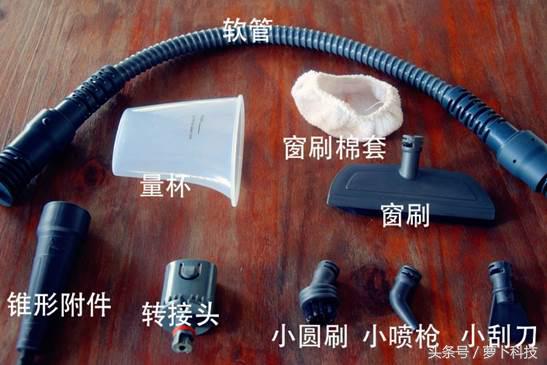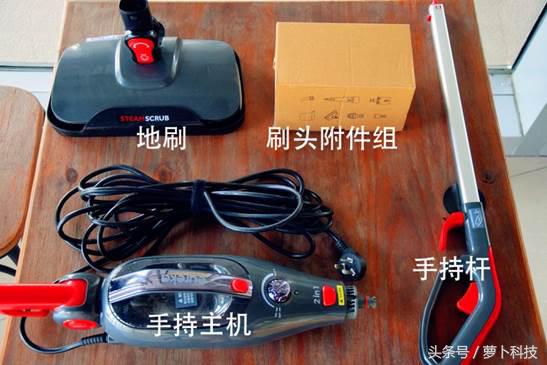 eureka蒸汽清洁机SC5的配件并不复杂,有手持主机,手持杆,地刷以及一组小的刷头及附件。
