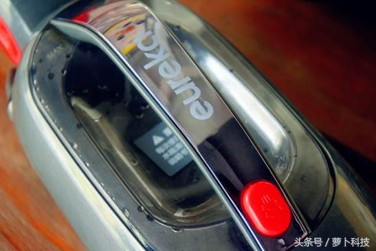 在主机的正面有eureka的标志,下面的红色按钮是手持模式下的蒸汽按钮。
