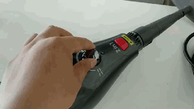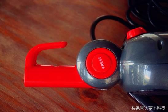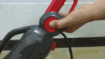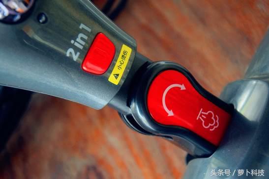 它采用了人体工学设计,握持舒适,长时间握持手也不会累,再持杆内侧有红色的蒸汽按钮,立式工作下它也是整个蒸汽清洁机的控制台。