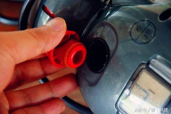 而在它的上方有个红色的塞子,这个就是加水口了。