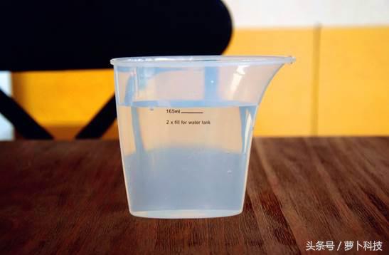 通过产品中的量杯可以为水箱加水。量杯上有刻度,它的尖嘴也可以很方便地加水而不会漏。