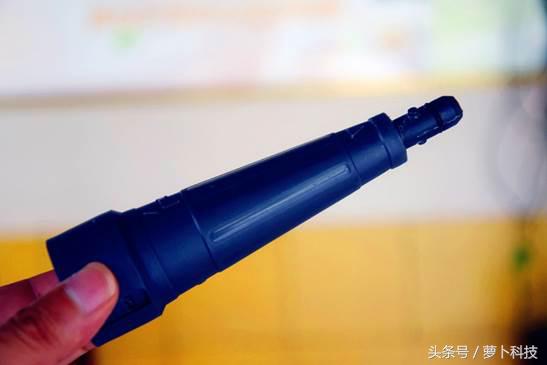 再手持杆的另一侧可以对接到主机上,再对接时将红色的按钮与主机上对应的位置对准,稍用力就可以了。