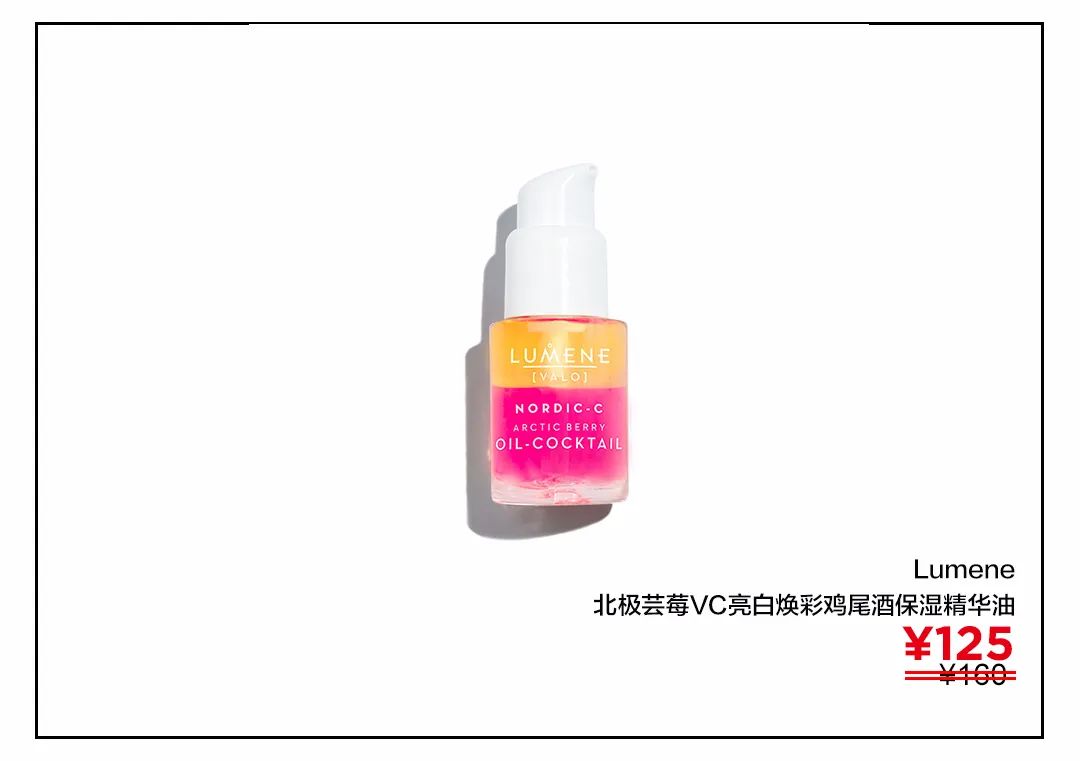 经常在佳琦直播间出现的这款高颜值双拼鸡尾酒精华油,含有橙黄色芸莓籽油和玫红色蔓越莓籽油,形成独特鸡尾酒颜色,高效抗氧化的同时美白提亮肌肤,不仅可以在面霜前使用,还可以混合粉底液使用,让底妆更加服帖有光泽。
