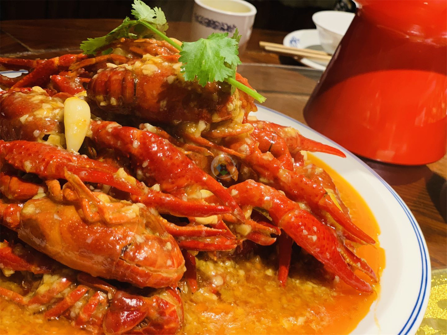 他们家蒜蓉小龙虾和麻辣小龙虾,是每桌必点的招牌菜,招牌蒜蓉小龙虾,按斤卖的,我一个人就能吃5斤。